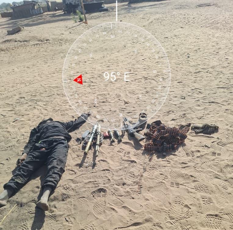 Following the failed attack, troops recovered several terrorist bodies along with weapons and equipment abandoned during the retreat.
